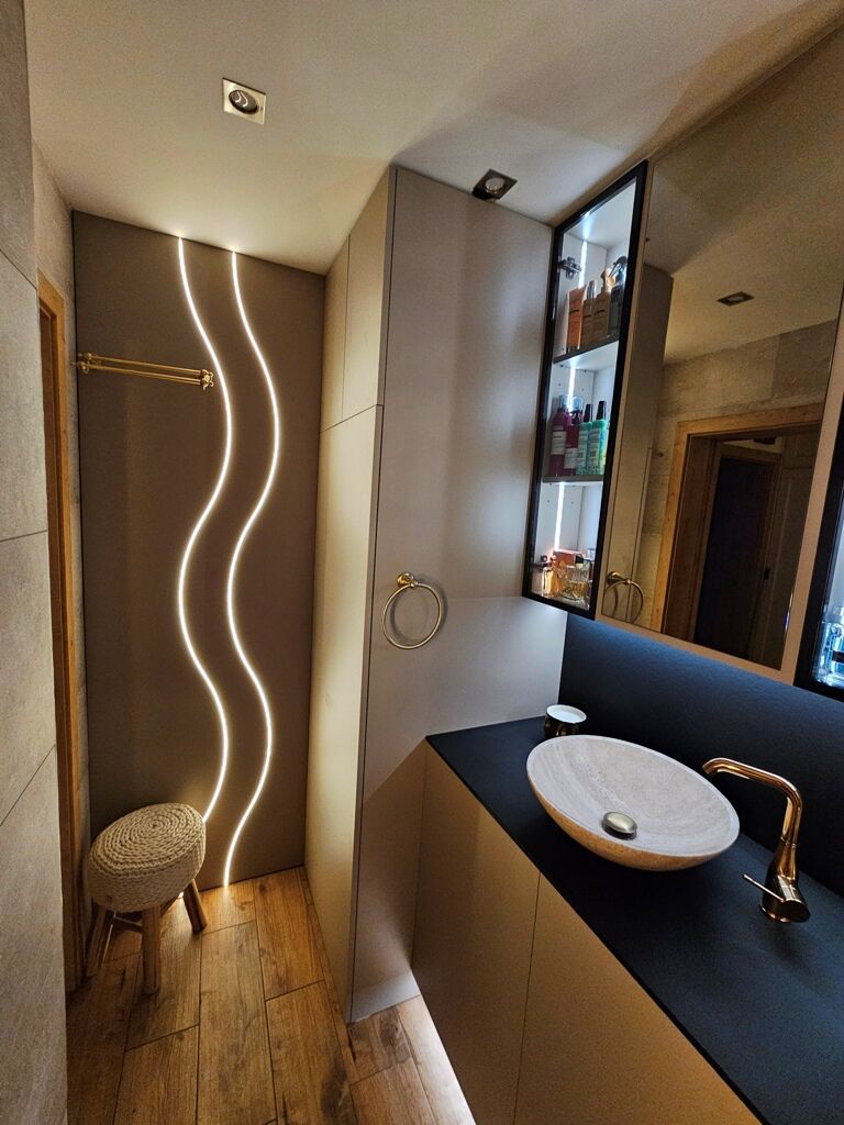 Dizajnové obklady vytvoria moderné línie alebo zložitejšie kombinácie so zrkadlami a lamelami, bez toho, aby priestor pôsobil prekombinovane.